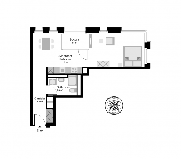 Living in the Vulcano Tower means privileged living. Highest living quality combined with functionality in one of the most prestigious urban skyscrapers in the city of Zurich. We offer more than the best in our business apartments and leave nothing to be desired. The northeastern orientation provides you with a breathtaking view over Zurich. The smart home technology allows a simple control of all electronic devices from the floor heating to the bedroom lightning and informs you during your breakfast about the weather in the afternoon. The high windows flood the serviced apartment with light and almost seem to make the apartment bigger. The beautiful loggia invites you to enjoy your time after a long day. The apartment has its own washing tower, in order to reduce the household activities to a minimum. Our business apartments in Zurich are tailor-made for confident people who know what they want - everything.