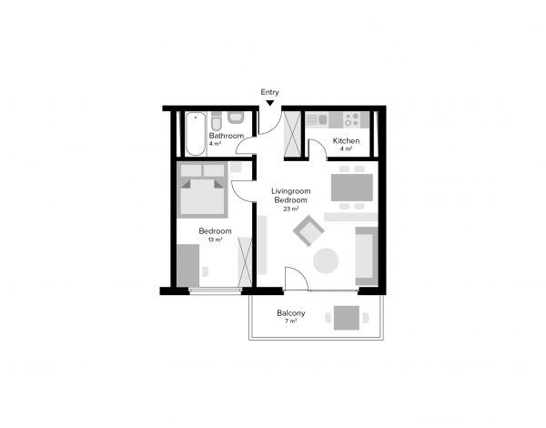 In comparison to the 1 room apartment, the 2 room apartment on Spannortstrasse has a separate bedroom. Especially for two people, this additional room provides a nice retreat. The fully equipped kitchen includes a four-person crockery set, kettle, toaster, microwave, pans and pots as well as a Nespresso machine - a practical gadget, that will help you to wake up easier in the morning. The warm bathroom with its built-in tub invites you to a hot bath when the temperatures are cold outside. The serviced apartment comes also with a Smart TV and has unlimited high-speed internet. The generous balcony invites you to have a glass of wine on a beautiful summer evening with an amazing view over the city of Lucerne.