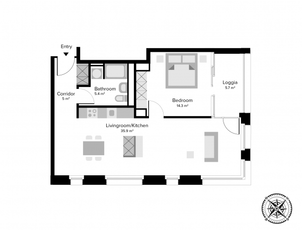 Living in the Vulcano Tower means privileged living. Highest living quality combined with functionality in one of the most prestigious urban skyscrapers in the city of Zurich. We offer more than the best in our serviced apartments and leave nothing to be desired. Due to the southeastern orientation of the apartment guest will get a lot of sunshine in the morning. The smart home technology allows a simple control of all electronic devices from the floor heating to the bedroom lightning and informs you during your breakfast about the weather in the afternoon. The high windows flood the business apartment with light and allows you to overview beautiful Zurich as well as the breathtaking mountain panorama. The beautiful loggia invites you to enjoy your time after a long day. Very skillfully, the serviced apartment gets divided into an eating / working area and a living area. This clever division results in a comfortable atmosphere. The apartment has its own washing tower, in order to reduce the household activities to a minimum. Our business apartments in Zurich are tailor-made for confident people who know what they want - everything.