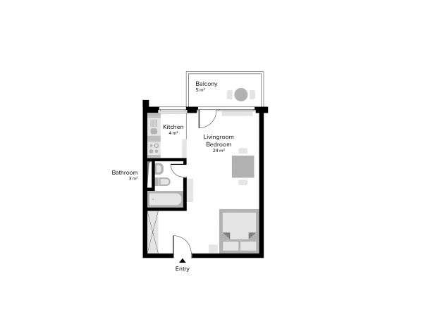 1 room apartment Spannortstrasse
